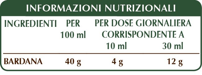 Glicerina vegetale bidistillata, acqua pura, bardana (Arctium lappa) erba e radici fresche E.I.L.