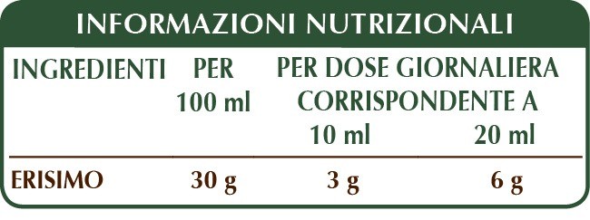 Glicerina vegetale bidistillata, acqua pura, erisimo o erba dei cantanti (Sisymbrium officinale) sommità fiorite E.I.L.