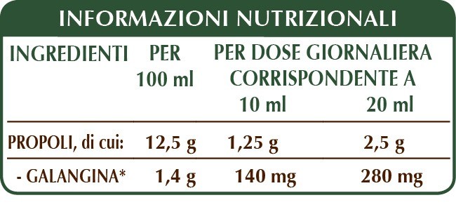 Glicerina vegetale bidistillata, acqua pura, propoli (Propolis) resina E.I.L.